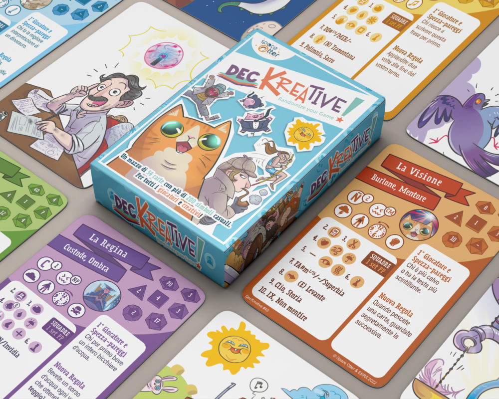[ENG] DecKreative! Randomize your games! DecKreative is a deck of cards full of randomized prompts made to help any kind of gamer and creative people! Acquista ora Discover how it works! [ITA] DecKreative! Randomizza i tuoi giochi! DecKreative è un mazzo di carte pieno di spunti randomizzati pensati per aiutare ...