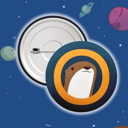 Stickers set with otters and logo of Space Otter, drawn by Giulia D’Urso.