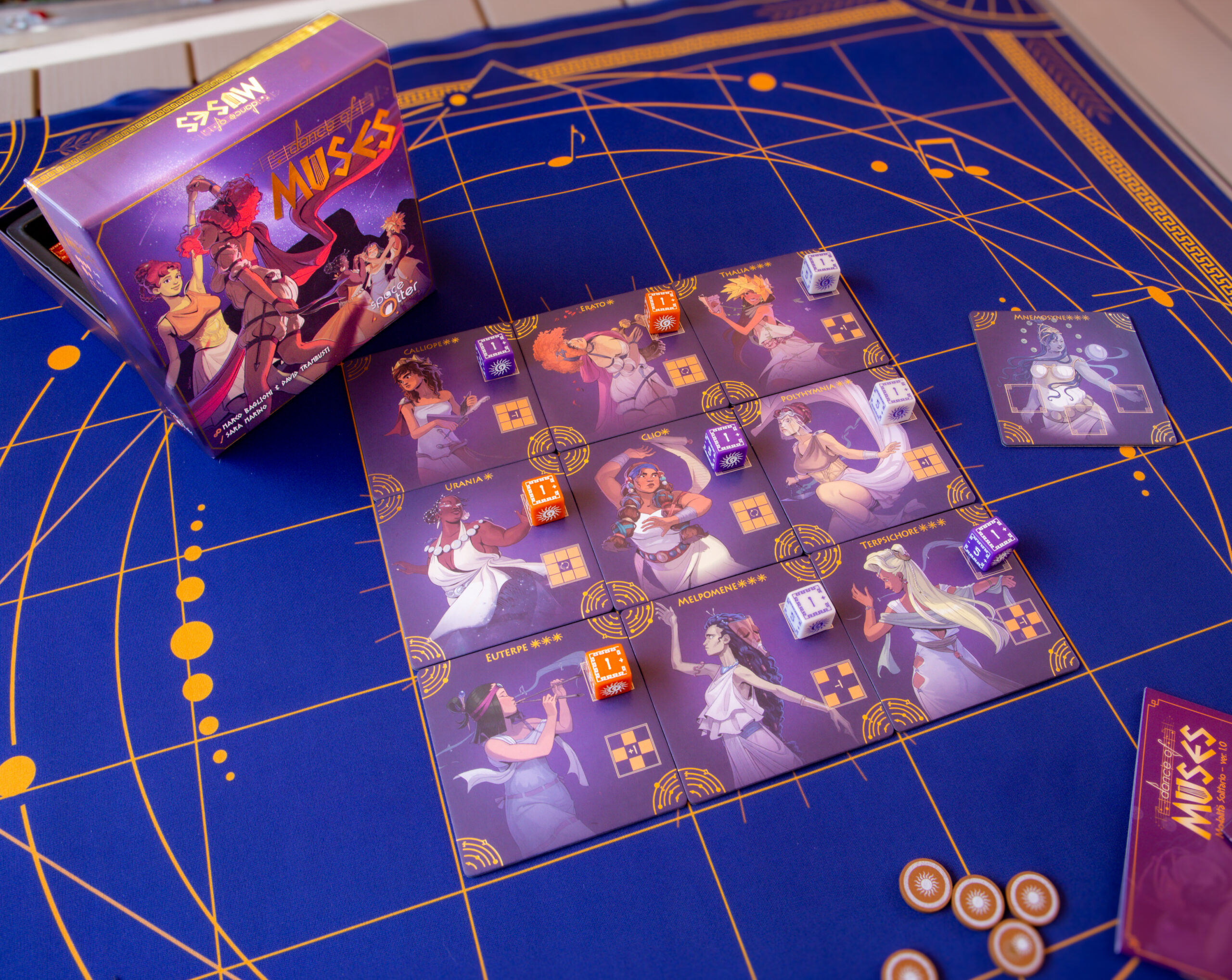 È un maestoso playmat in neoprene con bordi ricamati di 80x80 centimetri. Non serve solo a fare scena: limitando lo spazio di danza delle Muse questo accessorio crea in realtà l'ennesima variante di gioco, che si somma a quelle del gioco base e delle altre espansioni!